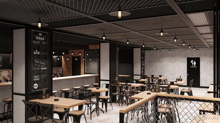 As a rule, the main task of the “loft” style is not to hide various irregularities and communications behind the decoration, but to “ennoble” them, to give them a more modern and neat look. It will be very easy to start repairs yourself, it is enough to clean the surface of the ceiling from all coatings and give it a slightly treated look.
