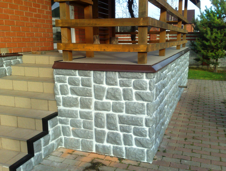 The main task of this finishing material - facing the lower part of the structure, which lies on the foundation. The main sphere of use is the design of wooden houses with a stone base. The stone material masterfully imitates the texture of a wild stone and its original coloring.