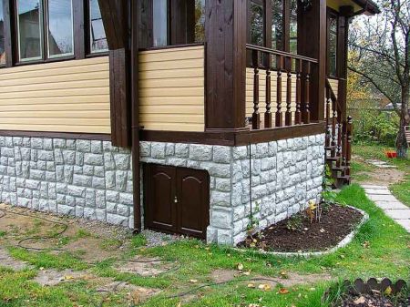 For the finishing of this part of the house is used ground siding. This is a separate type of finishing material, which is a facade cladding. The most popular lining under the stone. Let us examine this type of finish in more detail.