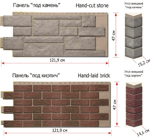 The size of the finishing material substantially depends on the brand and the specific collection. Included with the facing panels are the corners and finishing strips for fastening (profiles). You will learn how to install the basement siding under the stone, from the following video.