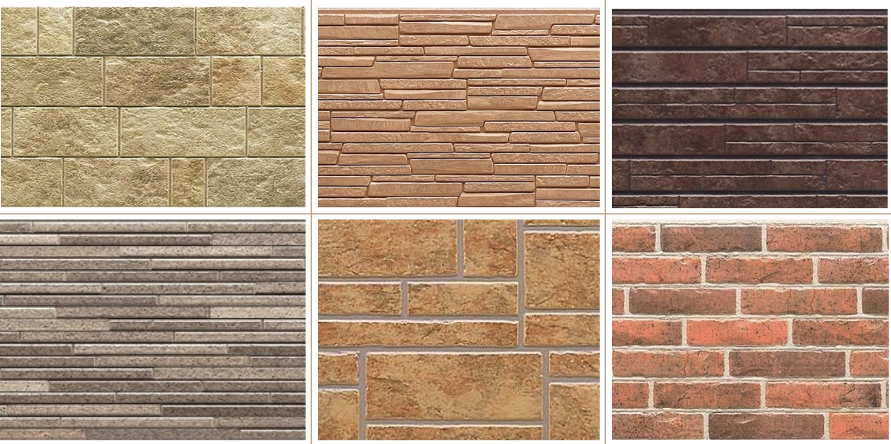 - High-quality imitation of various types of masonry from natural stone. Visually determine the difference is almost impossible.