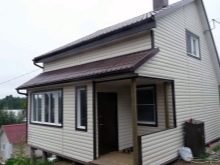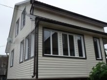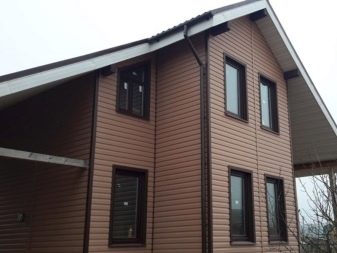 - With the use of siding "ship timber" construction will traditionally look, but the facade can be given originality by a combination of several shades. By purchasing this type of lining, the owner of the house for many years will get rid of the task of improving the appearance of the home.