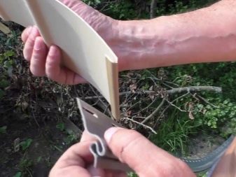 The installation of the front panels begins with openings, on which the U-shaped profiles are fastened with self-tapping screws to wooden frames. Slopes will be fixed on the profiles, the second joint is closed by a casing. Using scissors and a saw, the remaining material length is removed.