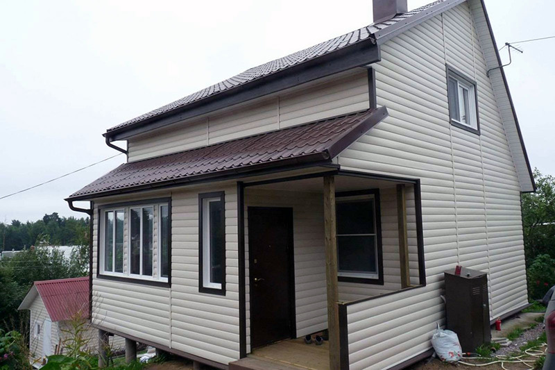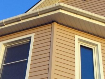 The inner surface is covered with soffits. The use of several types of siding will come up with an original design. Moldings will close those areas in which the transition of the horizontal plane into the vertical.