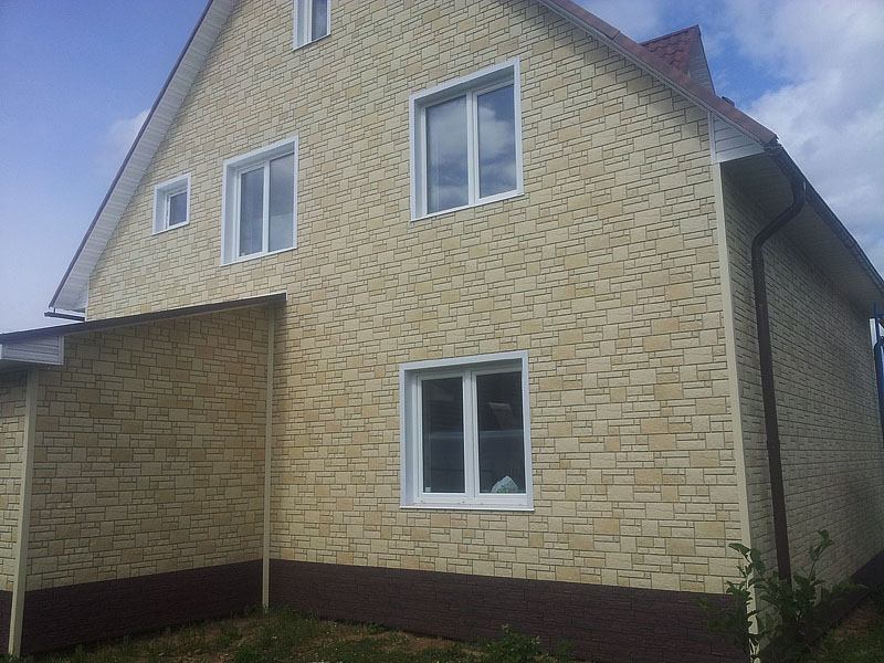 - Ground siding - the best option the bottom of the house. The panels perfectly convey the texture of natural raw materials, imitating bricklaying or stone tile.