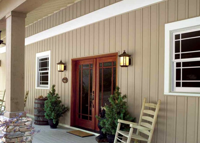 - Vertical Panels apply if there is a need for a visual increase in the height of the structure. They are well combined with other types of siding, thereby increasing the possibilities of design ideas in the design of the facades.