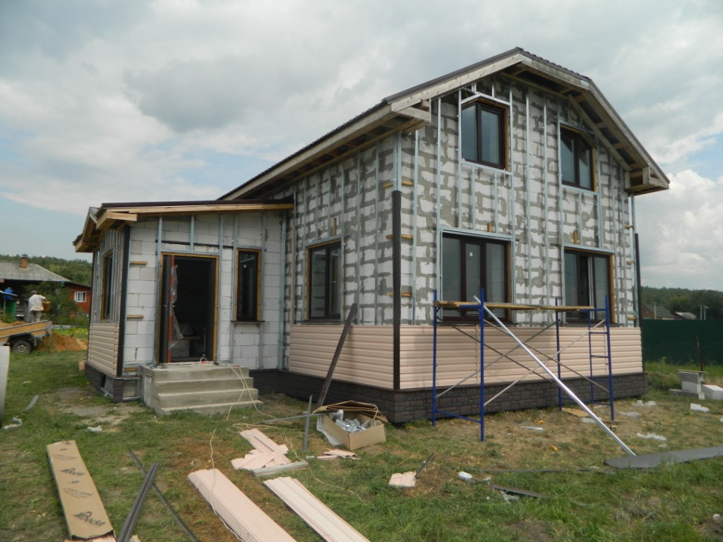 - Siding block house as a facing material has such advantages as changing the appearance of the house and insulation, which provides additional comfort.Such advantages when using this material provide it with wide application.