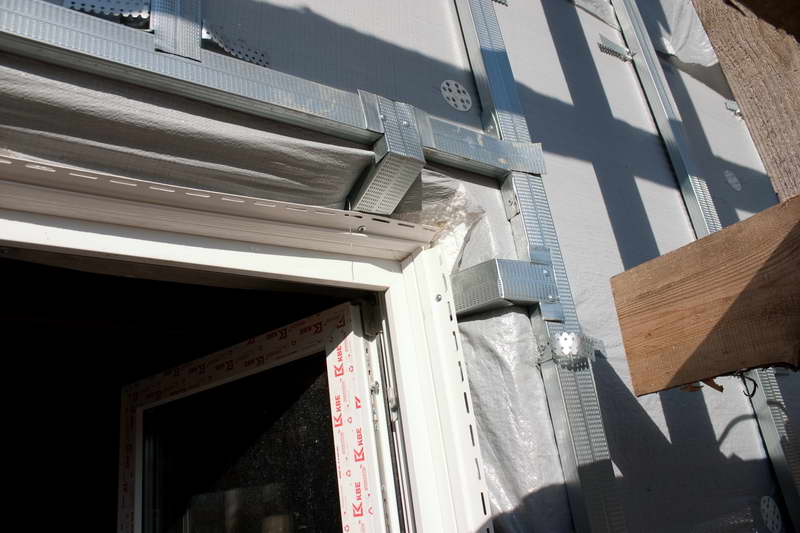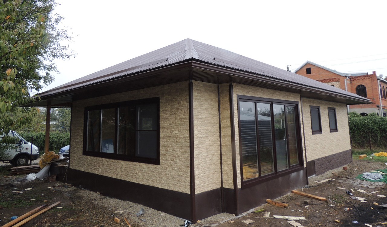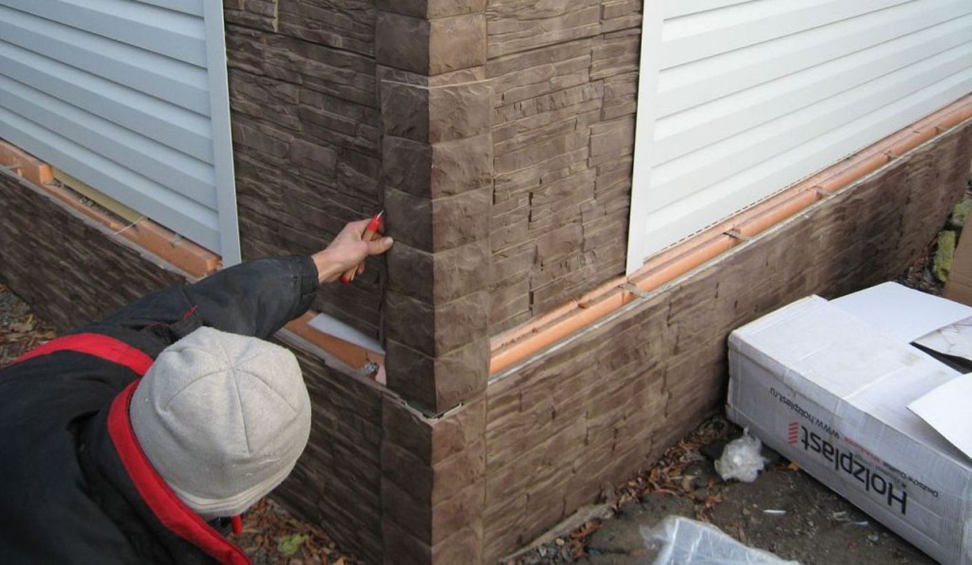 Further, a baseline is drawn, according to which the initial level is laid, corners are mounted, windows are made, profiles are installed, and after that the panels themselves are fixed. Installation of panels is made, starting from the back of the building.