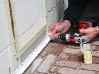Once the complex corners are decorated, you can immediately mount the profiles that frame the window and door openings. It is more convenient to do this also with the help of special additional elements: a low water bar (platband), a slope bar. The first is selected taking into account the width of the opening, the second is mounted at the bottom of the opening.