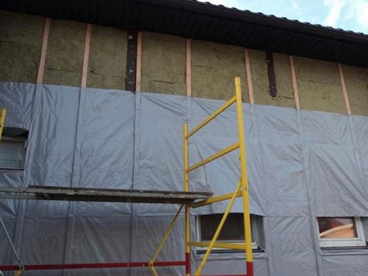 The next layer is waterproofing and windproof. For it use superdiffuse membrane or conventional waterproofing film. It is sold in rolls and overlapped. Places joints, as well as accidental damage should be taped.