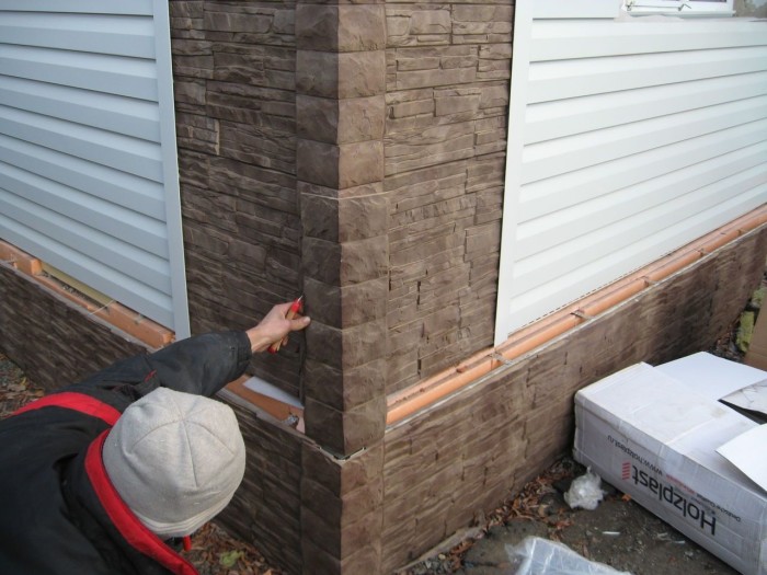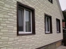 A sheet of material costs at least 400 rubles. Repeat the surface of the stone better polymer siding can only finish fibrosiding. It is made from cement, and strengthened with cellulose fibers and fiberglass. Outside the panel is covered with a polymer film that protects them from moisture and the action of sunlight. This type of siding - impact resistant, does not deform when the temperature drops, does not burn or melt.