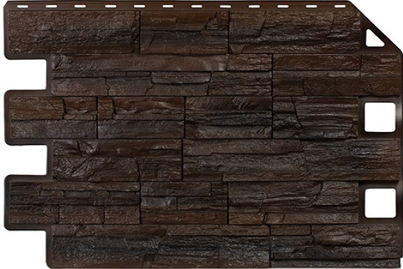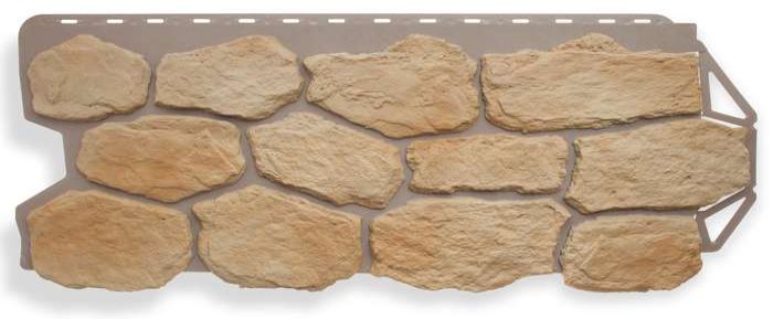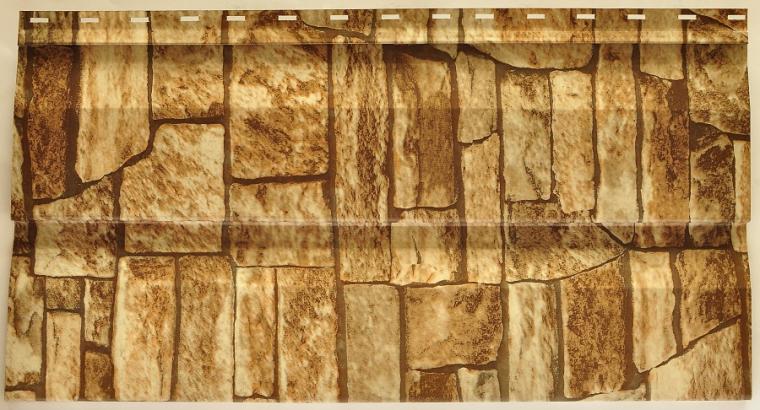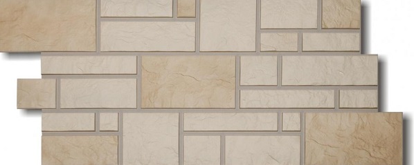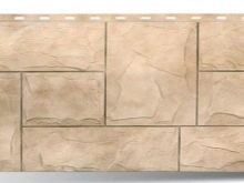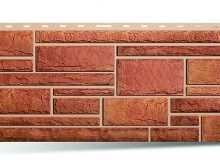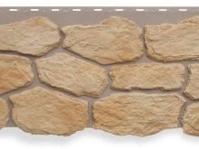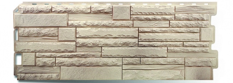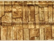 - Rocky stone imitate vinyl and fiber cement panels of different shades. Due to the rough surface of the panel under the wild stone are almost indistinguishable from the present laying.