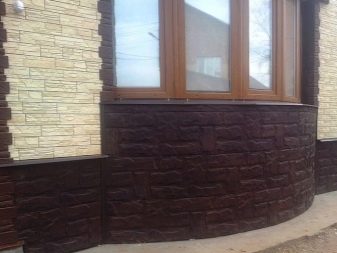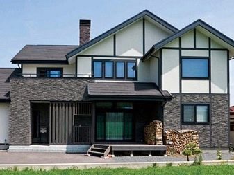 You can come up with many combinations of panels with other materials. However, designers are advised to always make a clear boundary between the basement and the main part of the building. The difference may be in the color of the panels, the scale of their relief, decoration. Larger and massive parts are suitable for the lower part, lighter ones for the upper part.