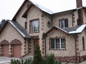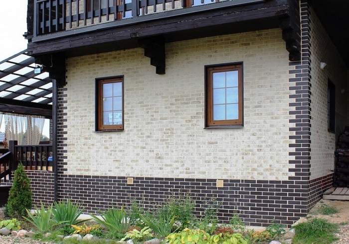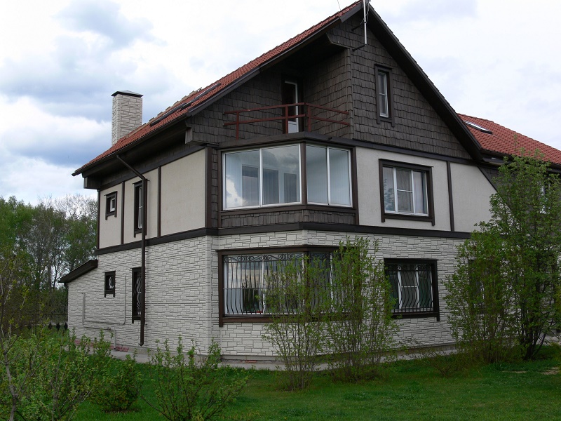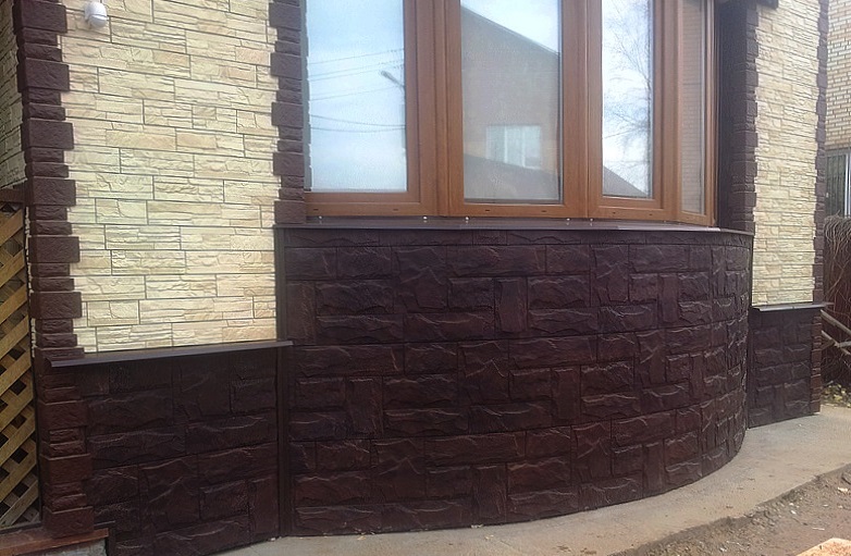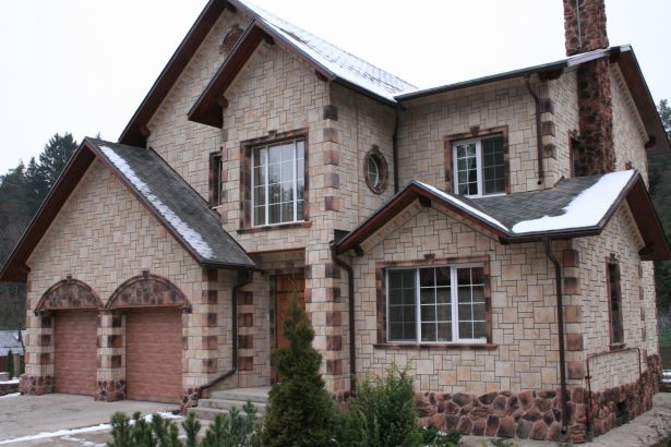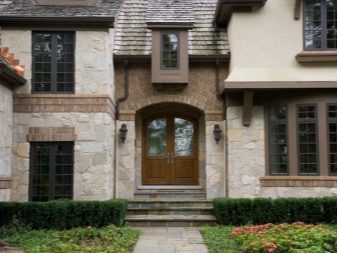 The size of the relief should be combined with the size of the building. Large masonry looks good on large buildings. A small house with a massive pile of cobblestones looks ridiculous. Decorative possibilities of siding under stone is wider than solid wall covering.Successful is the combination of walls trimmed with basement siding, smooth plastered surface and panels imitating wood.