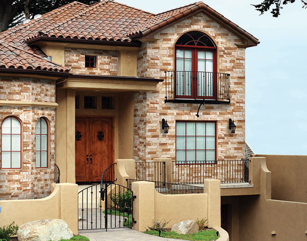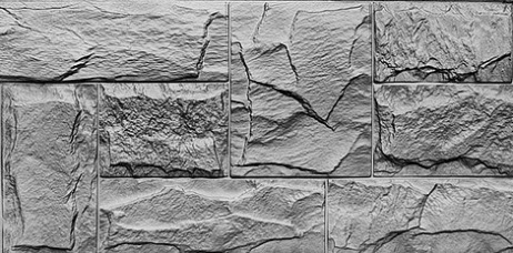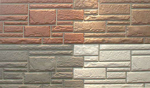 - Exclusive - painted inhomogeneously, and the color repeats the colors of one of the types of natural stone. Due to the relief surface of the panels, it seems that the wall is made of natural material. The seams are the same color as the masonry mortar.