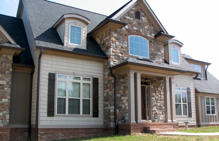 The stone base is reliable and gives the house a respectable look. But stone is an expensive material, and working with it requires professional skills. A good alternative to stone will be finishing the base of the house with a basement siding under stone.