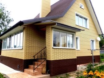 Ground siding "Under the brick" has a spectacular appearance. From his prototype, he is practically no different. The desired roughness is achieved thanks to the forms that are used as an impression in production.Panels of this type are usually compact. Therefore, even if there are a large number of figured windows in the building, it would not hurt to carefully sheathe the facade.