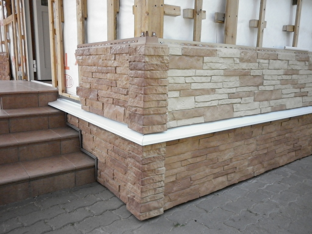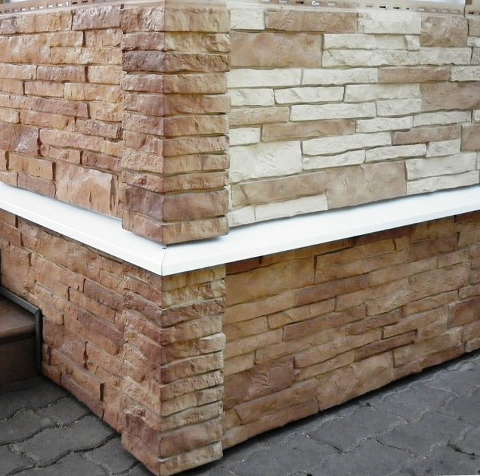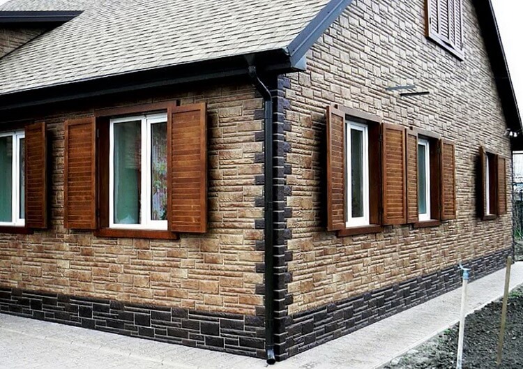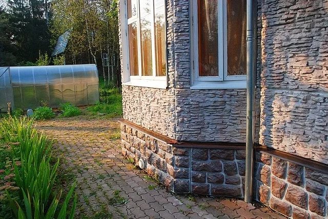 This type of siding is trimmed exactly the socles of buildings, which usually require reliable protection. The rough part of the material creates the effect of a stone base.