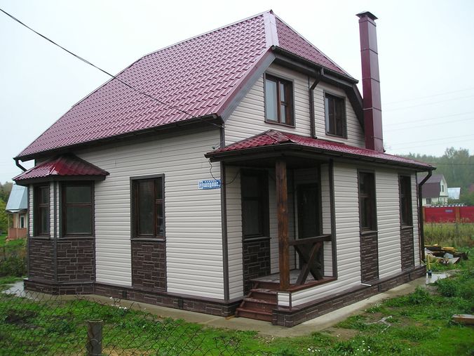 You can independently choose the option of finishing, taking into account the color of the roof. If it is blue, then light (warm or cold) tones will be well combined with it. If the roof is brown, you can consider light green, white, cream shades. A green roof will be in perfect harmony with white or gray siding. The red roof goes well with many shades. Undesirable in this case are turquoise, blue and other shades of this range.