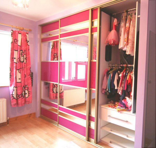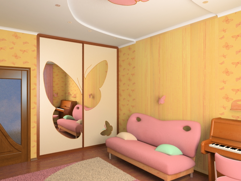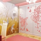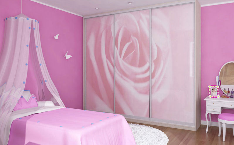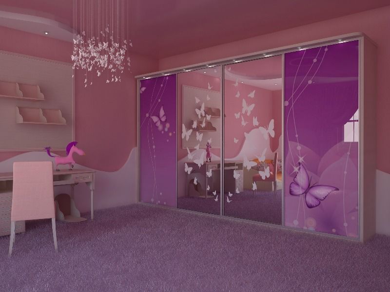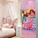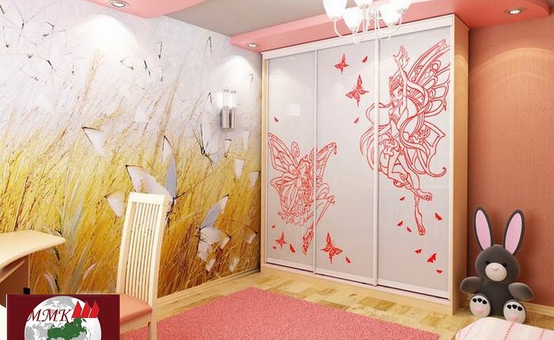 Equally important is the design of the wardrobe, it must be in harmony with the interior of the room itself. For a little girl, bright, saturated tones are most suitable. The wardrobe should please the child and become the main focus in the interior of the room. If the girl really likes fairy tales, princesses, then it is quite possible to choose a model with the image of cartoon characters. Also in the girl's room will look good closet with butterflies and flowers.