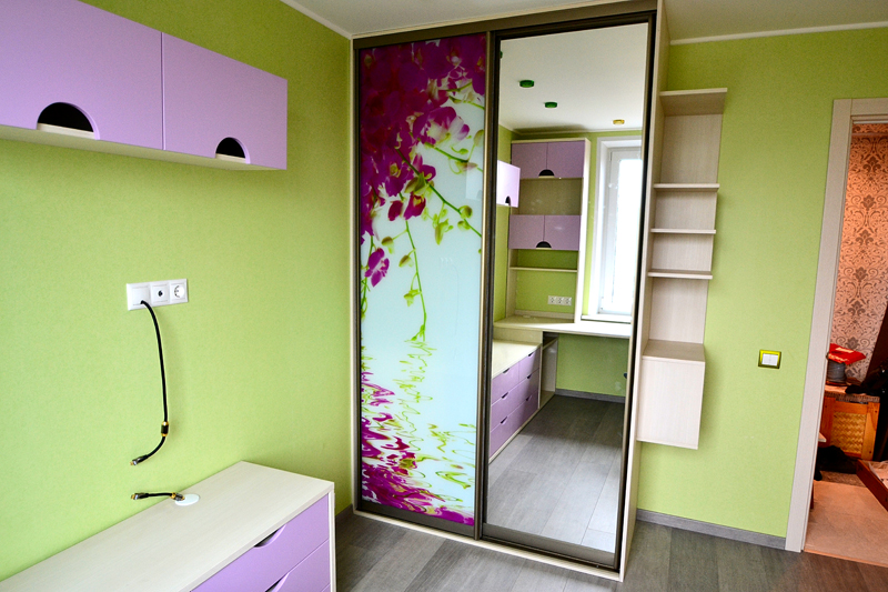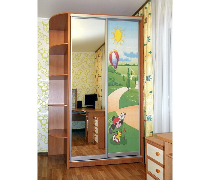 One more excellent option for a nursery will become a case with a photo printing. In this case, even your child will be able to participate in the choice of drawing for his room. The sliding wardrobe with a photo printing can be ordered taking into account all your wishes. You can not limit either yourself or the child in fantasy, and the creative approach will make the model not only individual, but also convenient for your room.