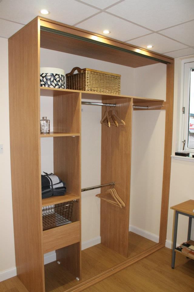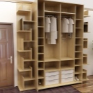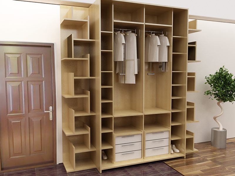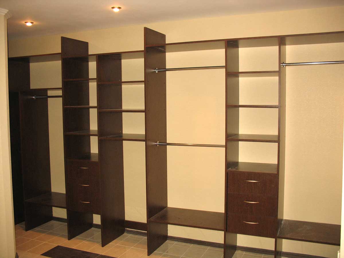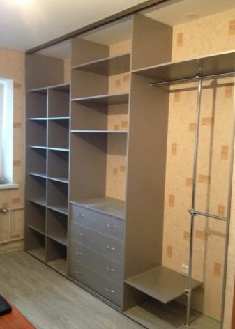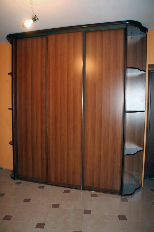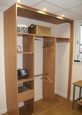 Wood is a traditional material, however, if you plan to make a built-in wardrobe, then it is better not to use it. Concrete wall creates additional moisture, and spruce and pine, from which boards are usually made, have low moisture resistance.