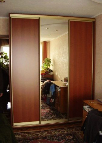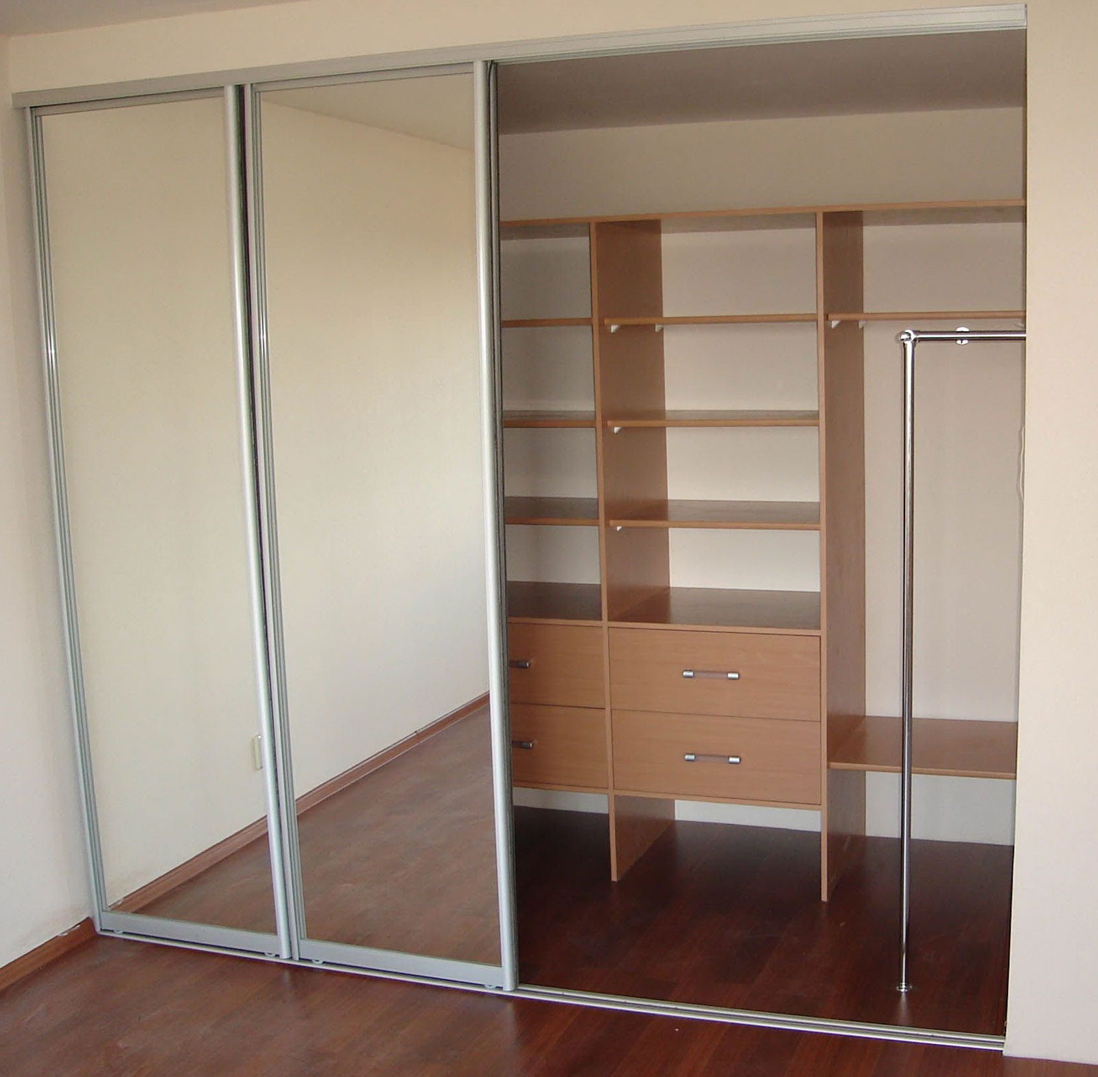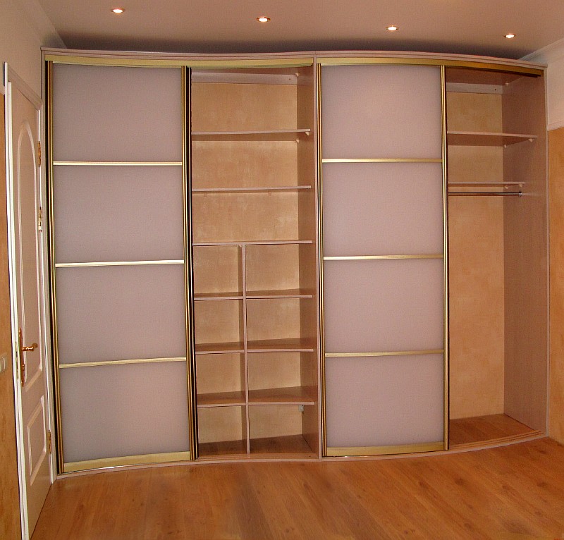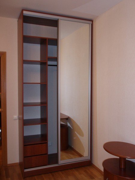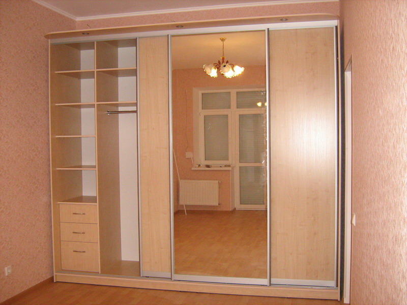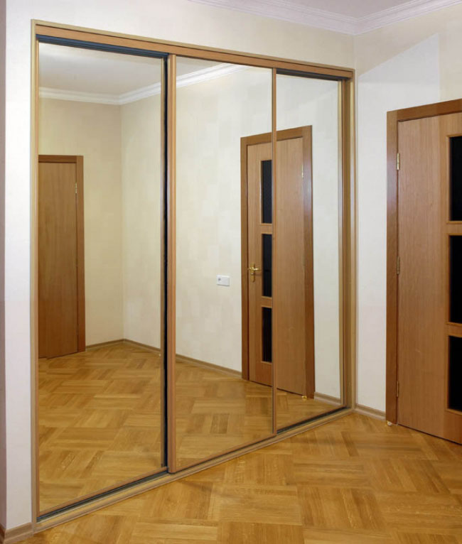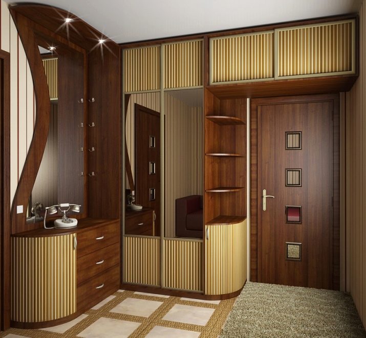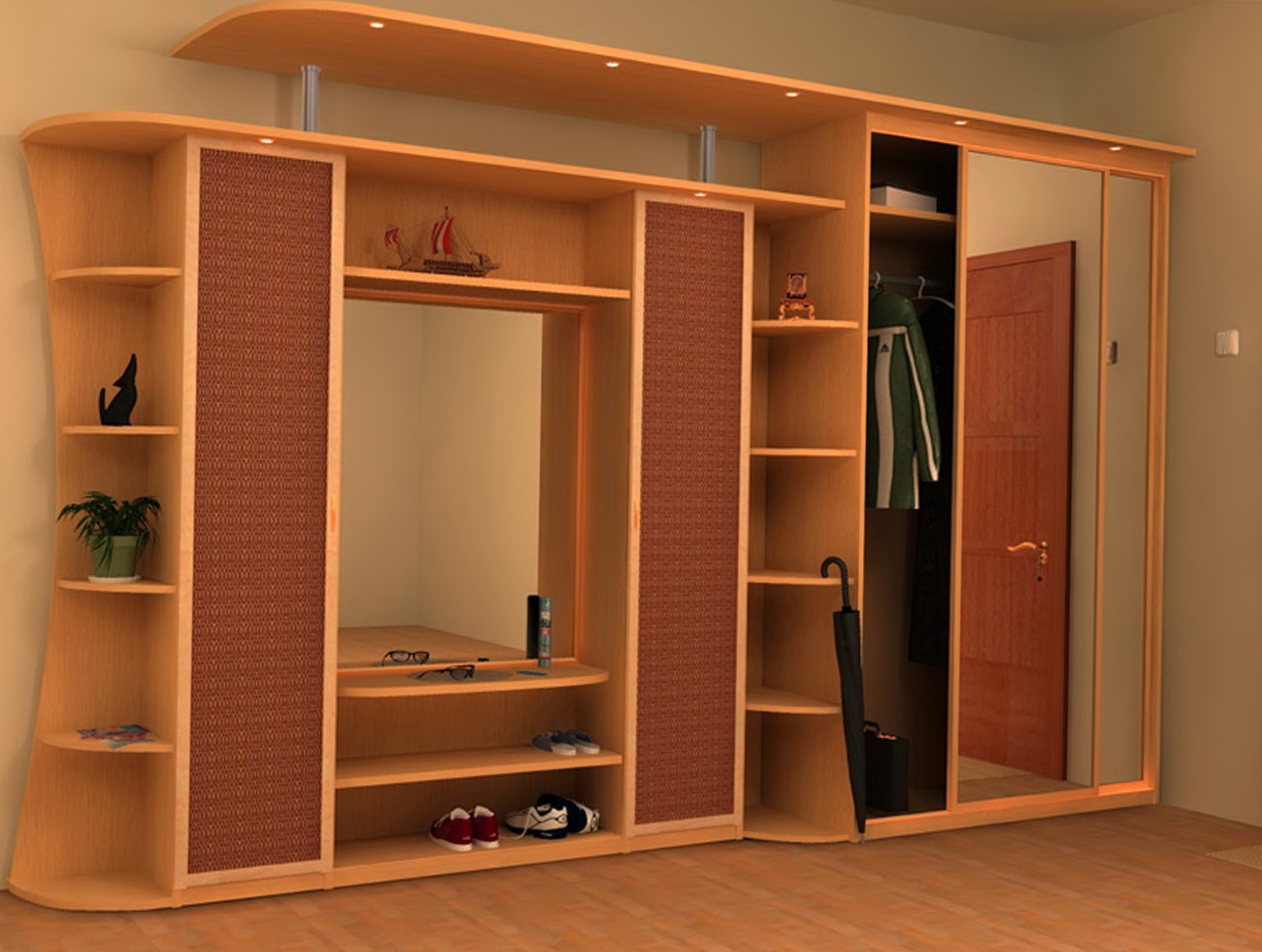 Placement of the cabinet in a niche. Residential designers are sometimes very creative, so half of the typical houses in the hallway have niches of unknown purpose. It is in this niche and you can make a wardrobe compartment.To do this, you need to install guides for the doors and order the doors themselves with fittings. In this way, you save space, time and money.