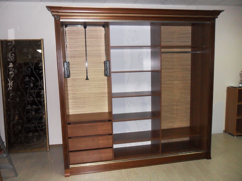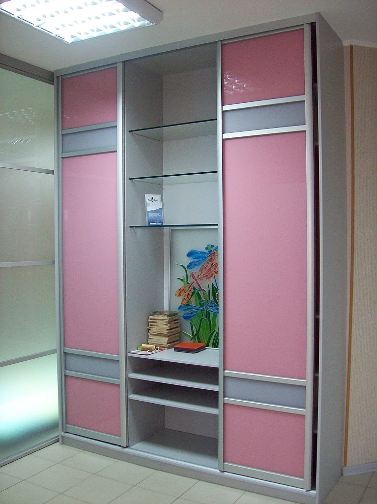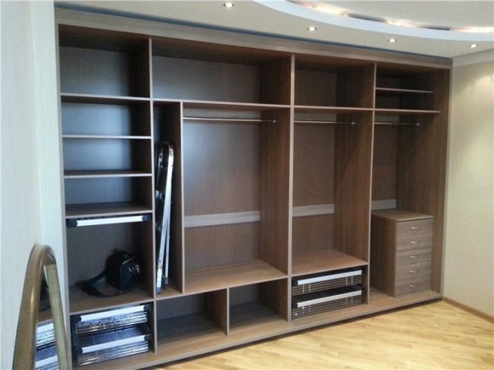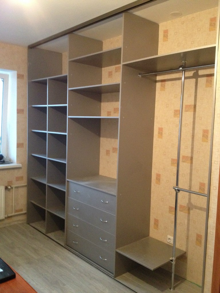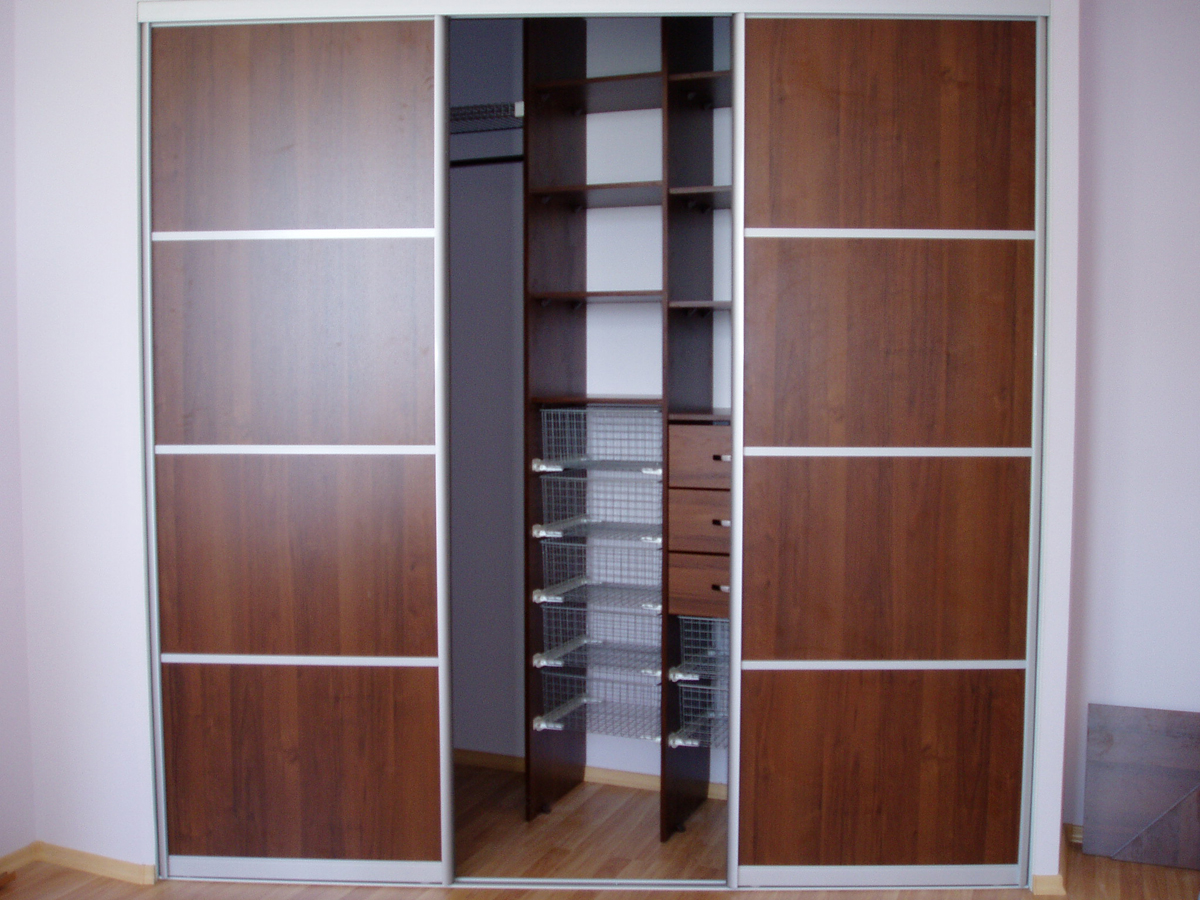 - The most important thing when designing internal sections is to take into account the width of the sliding structure! Therefore, pre-determine the number and width of the doors, then to fit the whole system for them. If the width of the door does not coincide with the width of the dresser section, the drawers will not open. The bulkheads between the compartments must coincide with the borders of the doors;