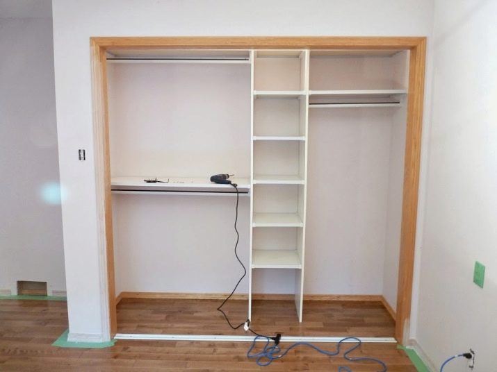 It is better not to use drywall, because this material is not for the manufacture of supporting structures. It is fragile and if you do not think through the complex design of the base, it will not hold the closet door.