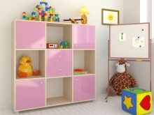 The most important feature of modern cabinets for toys is their versatility. In addition to toys, they can store books, stationery, bed linen, clothing. If you have chosen a modular system, then you know that such furniture can be supplemented with new sections, drawers, shelves as needed. These same sections, drawers and shelves must be located so that the child can always reach the toy he needs without difficulty and risk.
