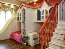 - You can also separate the playing area, and at the same time equip a place for storing toys by setting up a “hostess corner” in the room with a stove and kitchen furniture, or put a car in the luggage compartment of which all the “treasures” will be located;