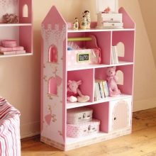 - Game cabinets. These include, for example, a large dollhouse or a garage for cars and other equipment. Such a closet will become not only a haven for toys, but also disciplines a child who, even in cleaning toys, will see not an unpleasant routine duty, but a game when all his friends return to their house to rest. By the way, the game cabinet can be homemade - in the presence of imagination and well-known skill, the father can easily make a plywood dollhouse for the daughter or a gypsum boarding for the son;