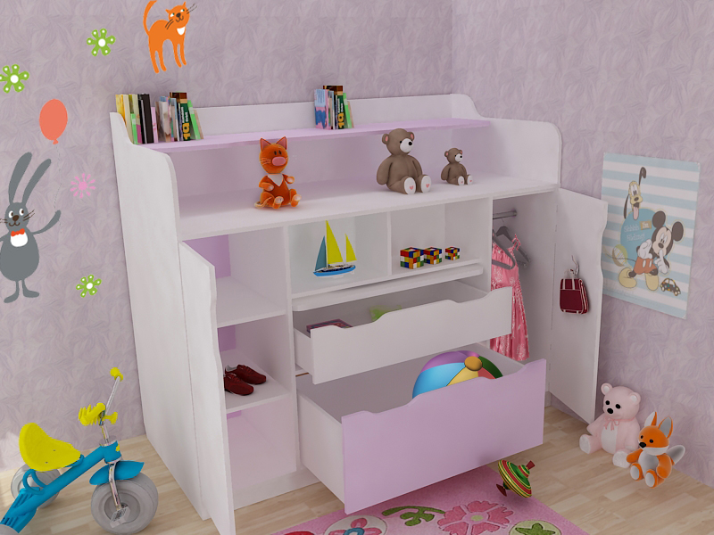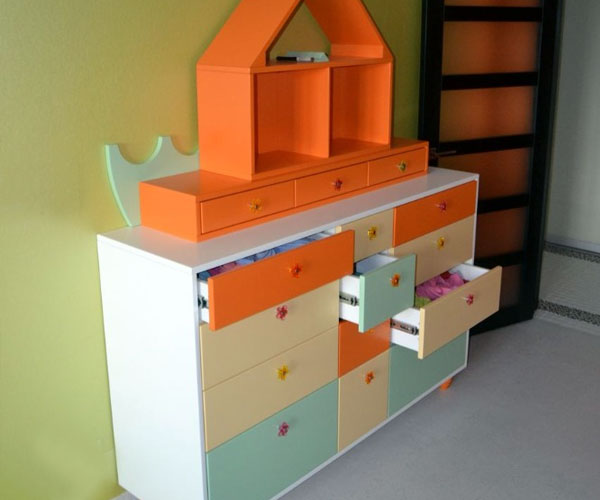 - Dressers with drawers. Suitable for storing bedding, linen, clothes, toys and board games, stationery and books, in general, any children's things. Make sure that the child can easily open and close the drawers. A plus would be the availability of closers for automatic closing;