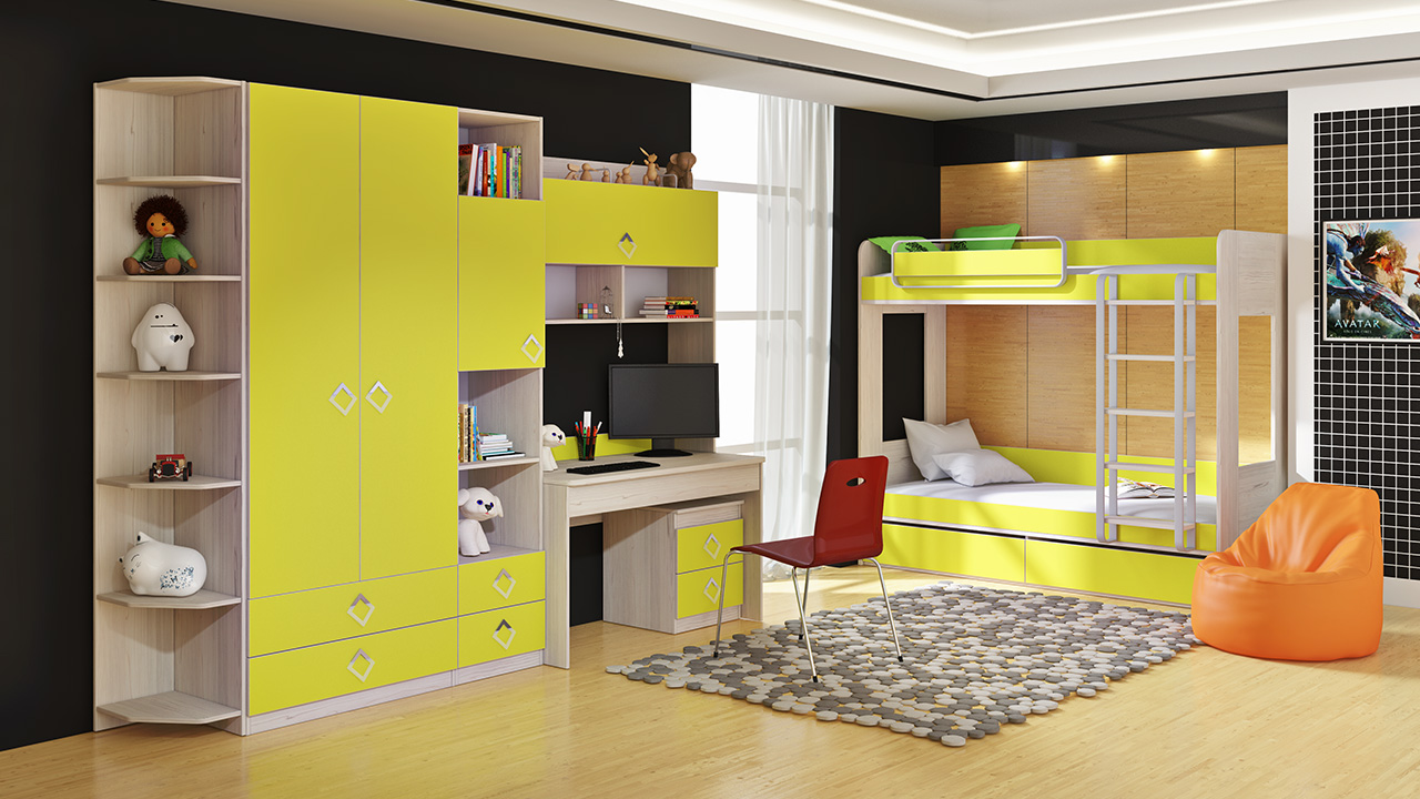 - Modular furniture. An excellent solution for those who do not want to change furniture often, but does not like monotony, and also understands that the child will need more places to store things as they grow older. That's the beauty of modular systems: you can buy all the pieces of furniture as you need them, and you will be sure that they will all fit together and look modern.