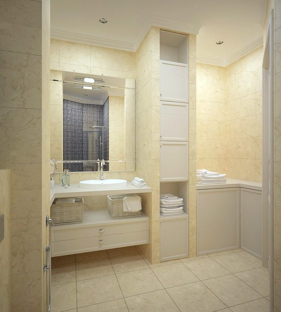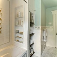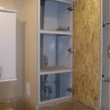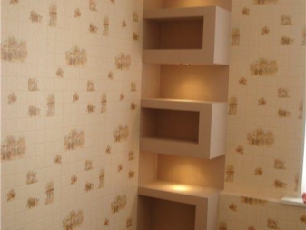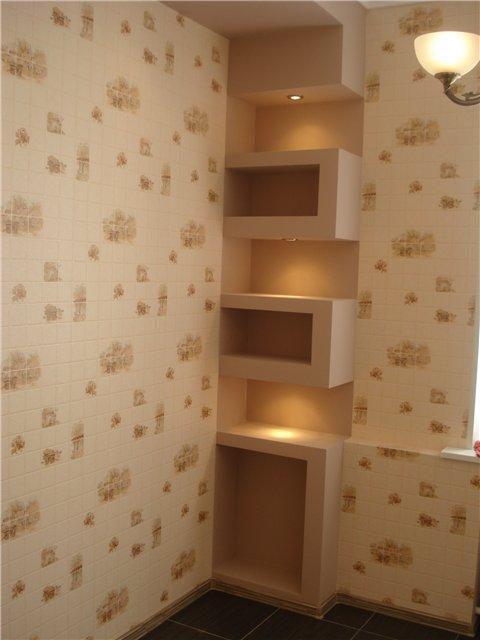 A lot of little things have to be stored in the bathroom and toilet. For these purposes, you can also build cabinets of plasterboard fabric, resistant to high levels of humidity. It is also advisable to protect the surface of such structures with external covering with tiles, mosaics, wall panels.