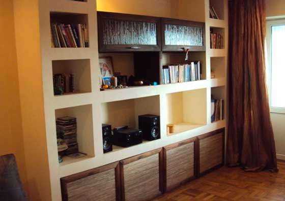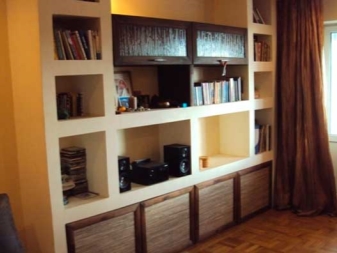 The main feature (and at the same time and lack of) the use of drywall in the interior is its exclusive use as built-in furniture. But on the other hand, structures built from gypsum sheets (GCR) can be used in small premises. Built-in closet for things can save square meters and extend the space for living.