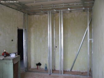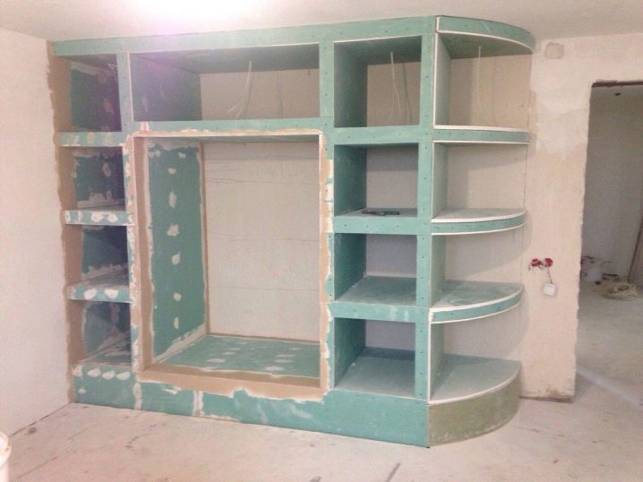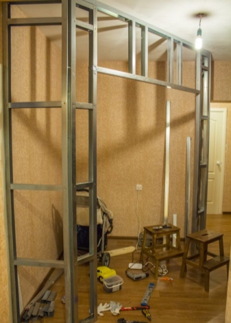 The basis for drywall construction, as a rule, is constructed from metal profiles. But if the planned load on the shelves in the cabinet is small, then wood can also be used. However, it will require pre-antiseptic processing and careful, weighted material selection.