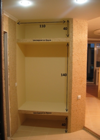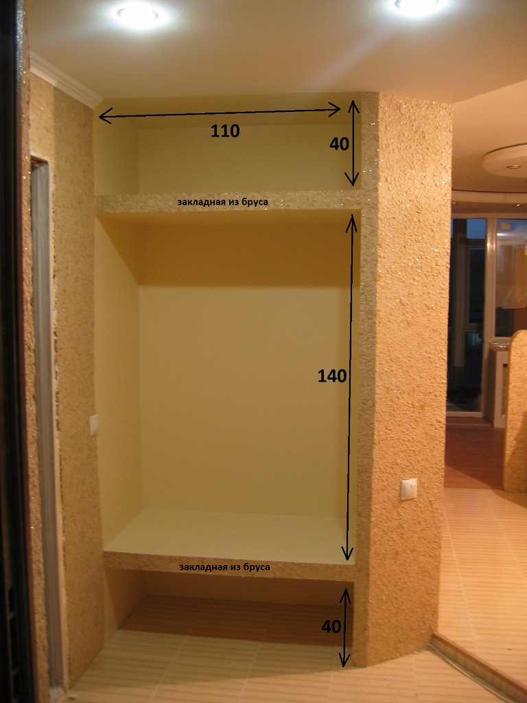 The design of the future structure will also need to take into account the thickness of the walls, rails, shelves, rails for sliding doors, or additional reinforcements to give greater strength.After the drawing is completed, it can be “transferred” to the place where the furniture will be installed. The marking of the walls will greatly facilitate the next stage - the construction of the frame.