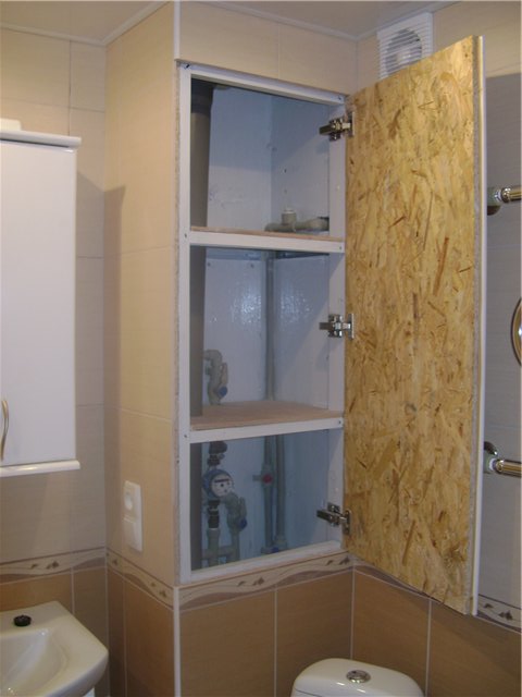 The cabinet is almost ready, it remains only to prime and putty, install rails for doors (if necessary), equip shelves (if they are from other materials) install the doors and finalize.