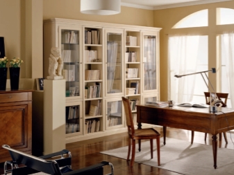 Classic bookcases were always made of solid wood, covered with black or red lacquer, decorated with marquetry, elaborate carving, demonstrating with all their appearance the prestige and welfare of the owners. This beauty and now you can still find in antique stores. But the models offered today are not inferior in appearance, winning in price.