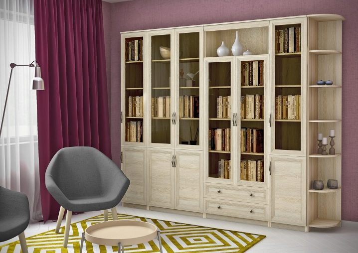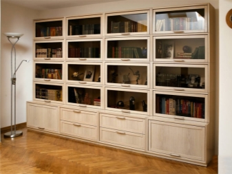 In modular systems, as well as among single cabinet cases, there are variants with bottom drawers. They will conveniently accommodate large library copies that cannot be stored vertically.