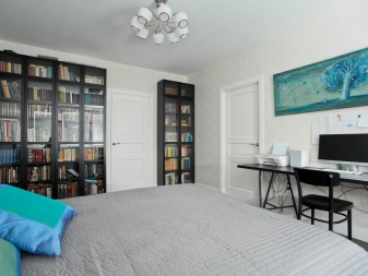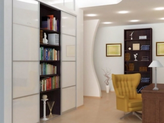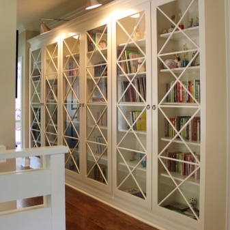 Bookcases are designed to streamline the books in the house by collecting them into the library. Equipped with doors, they protect the collection from dust, the destructive effects of light, children’s games, ensure the safety of books. Doors with glass allow you to view the contents and find the book you want without opening the cabinet. This is especially convenient if there are several cabinets in the interior.