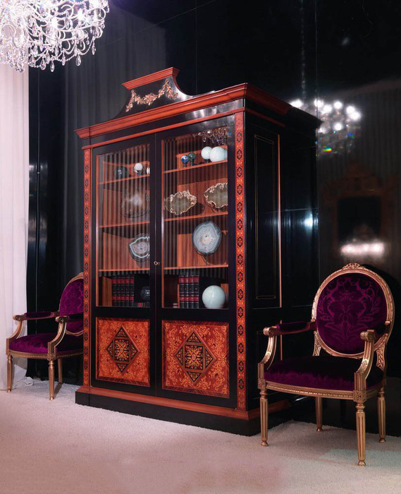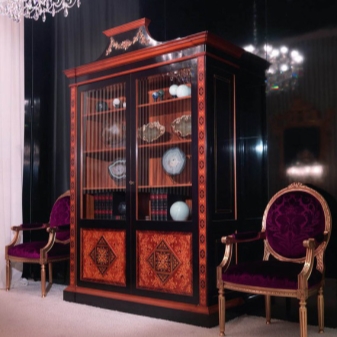 However, for lovers of the palace, royal interior with lush baroque patterns in the style of Louis, a modern manufacturer will be able to find in their collections a wonderful gilded bookcase, not inferior to antique pieces, with glass,executed in the best traditions of style: with stained glass windows and inlays, and the same intricate fittings.