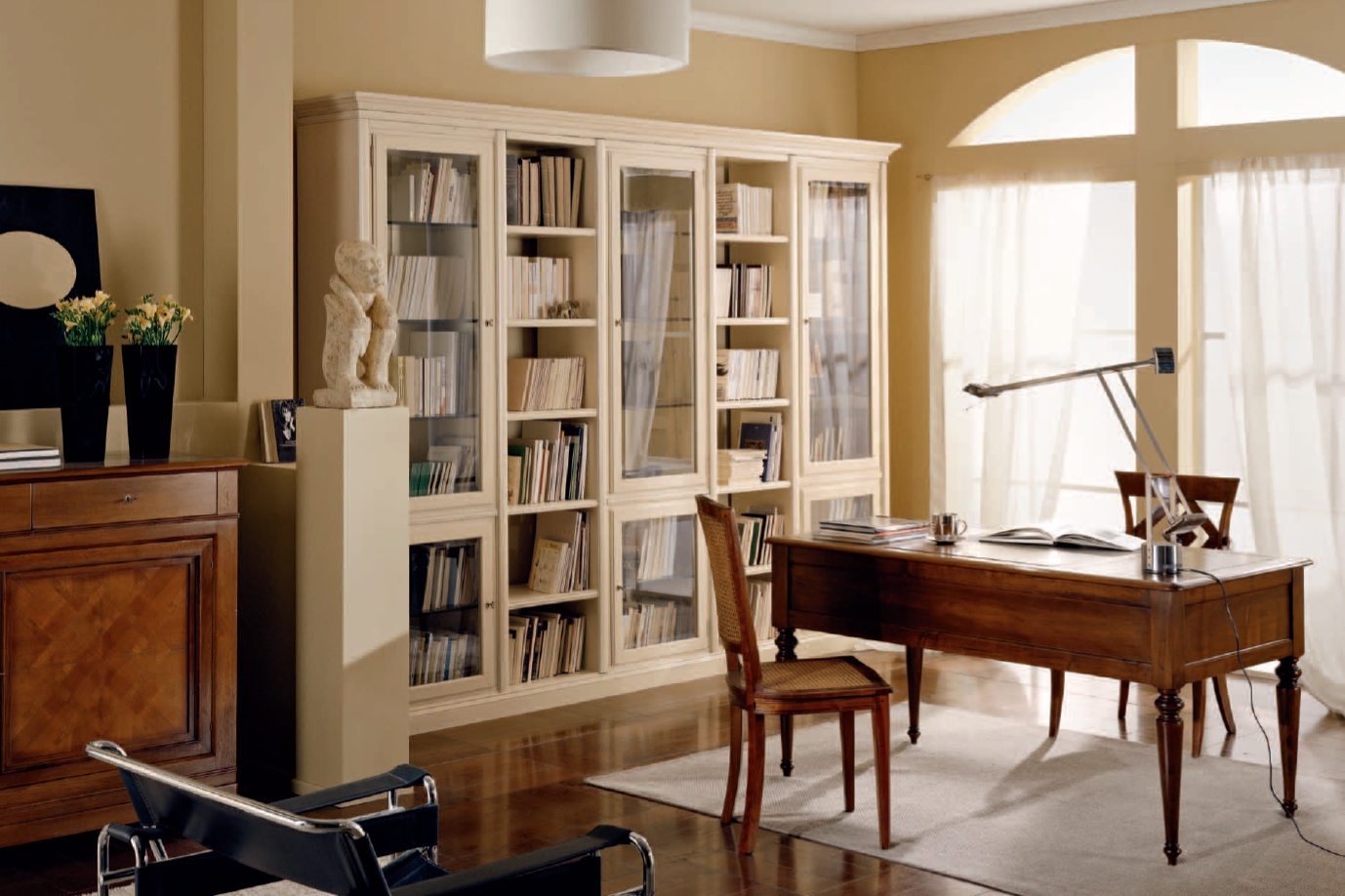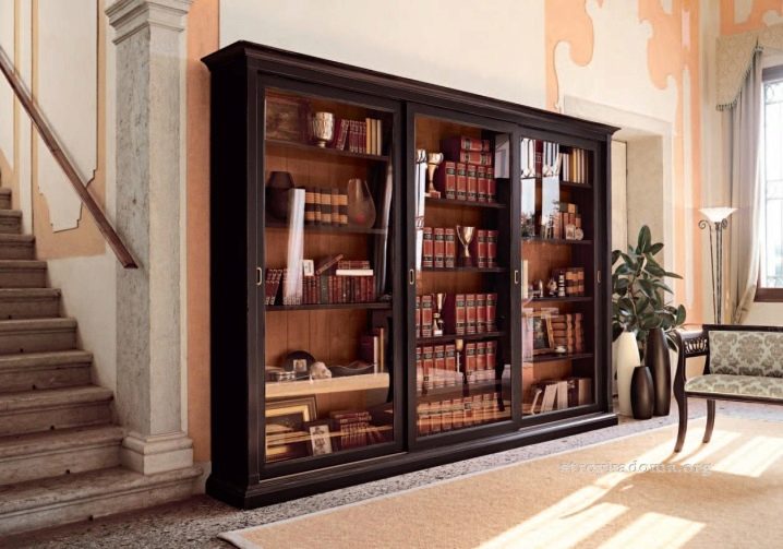 Almost all manufacturers of furniture have in their assortment a line of bookcases, among which there is a place for models with glazed doors. In catalogs, these products are often referred to as libraries, even if it is not a modular system for a couple of walls, but only a small pencil case or showcase. We are pleased with the variety of models that differ not only in price, but also in the quality of performance, the richness and variety of finishes, and the elegance of accessories.