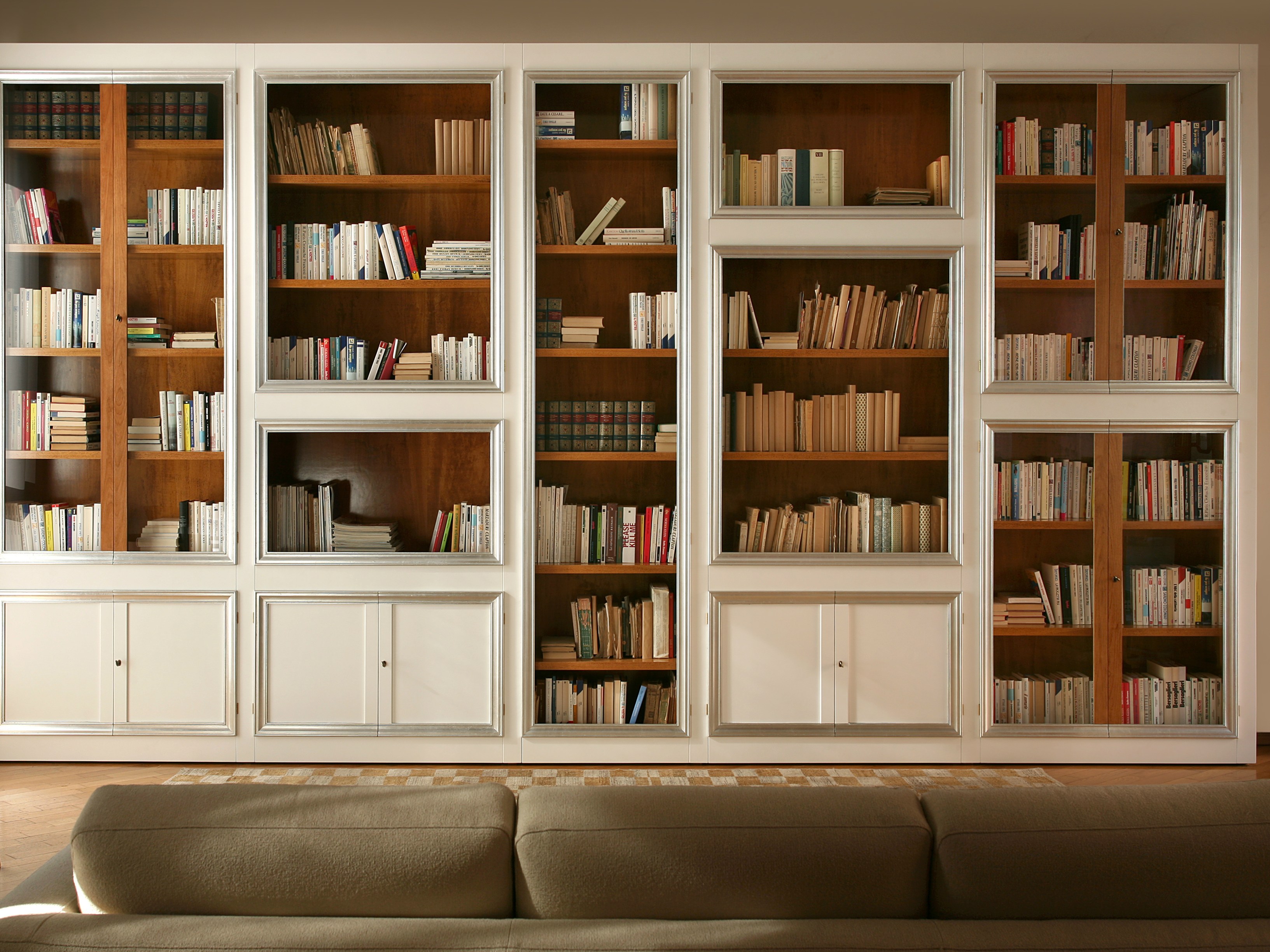 Built-in cabinets are usually custom-made, allowing you to make the most of the available space for the library and implement the most unusual ideas of the collection owner.