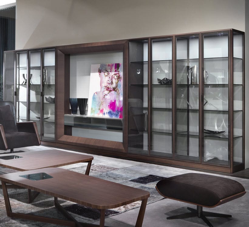 By design distinguish built-in cabinets and cabinet (cases, showcases, corner, linear, modular systems, mounted).