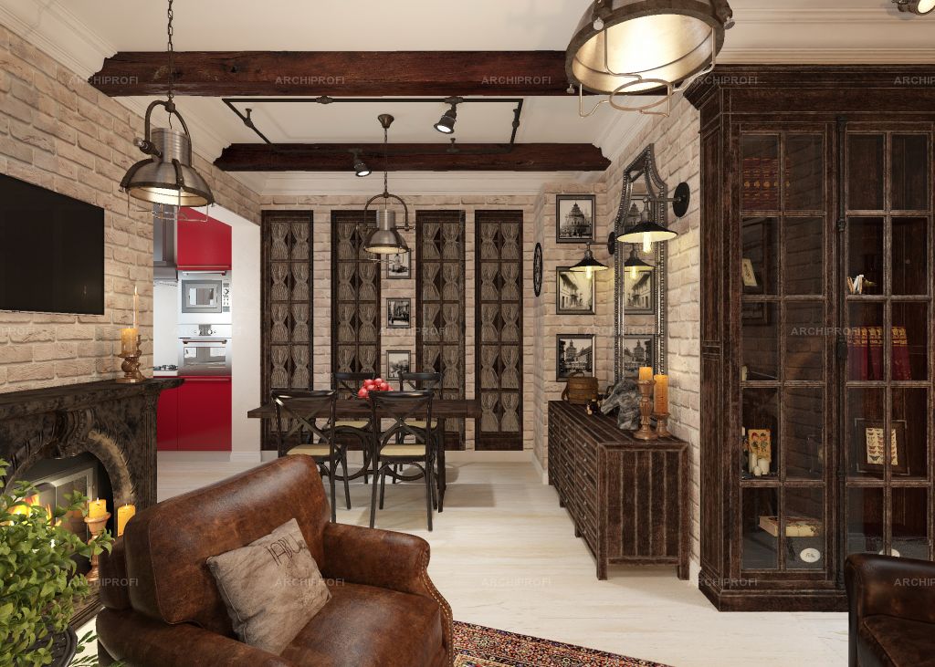 A softer version of the loft, more spiritualized. The furniture is slightly aged in vintage style. Looks sublimely attractive.
