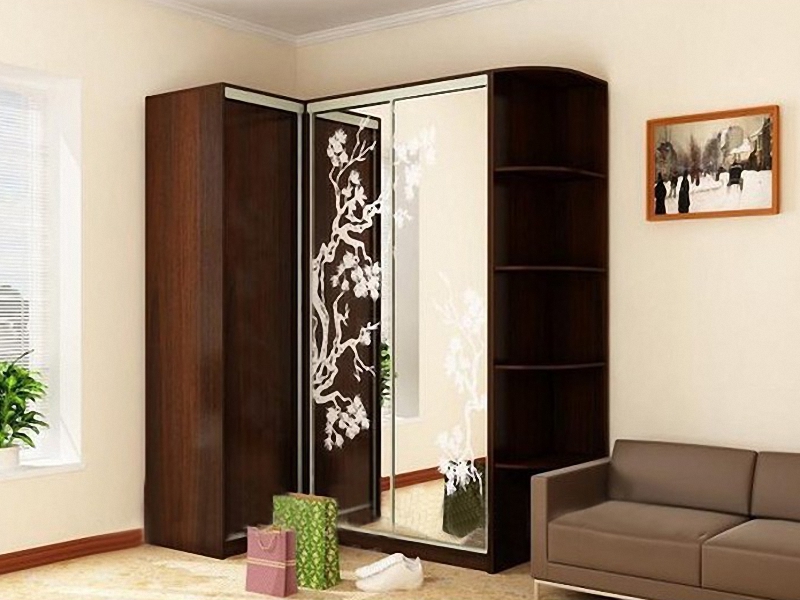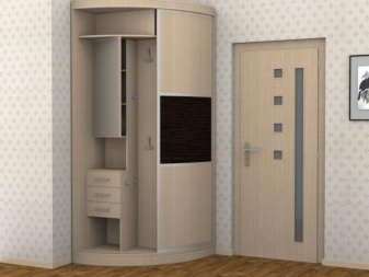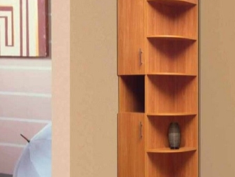 Particularly noteworthy are radial corner models. These rounded cabinets are suitable for styles. Art Deco, Empire. Due to the complexity of manufacturing, they are expensive. Convex cabinets are somewhat bulky, and concave corner cabinets are small in size, they significantly save space, while possessing a good capacity.