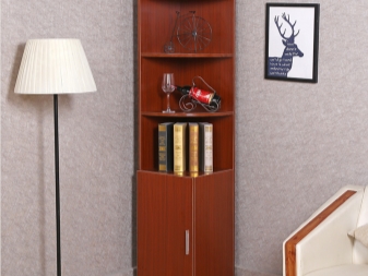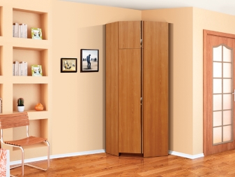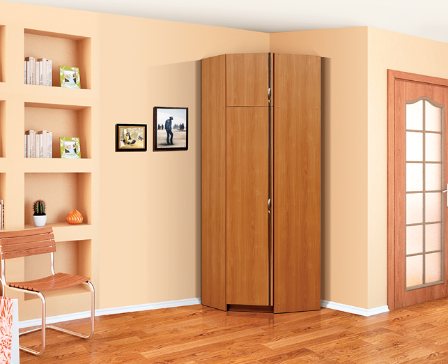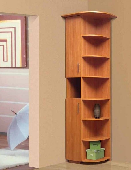 The corner cabinet-case will also perfectly fit into the room where children live, since he will not completely occupy the room, but, on the contrary, will make it more comfortable by teaching the student to clean his things carefully. Angular concave model is appropriate in the nursery due to its safety and the lack of sharp corners.