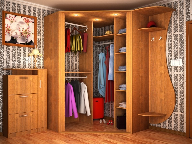 In addition, in the corner cabinets provide additional hooks and shelves for bags, belts, ties and other accessories.